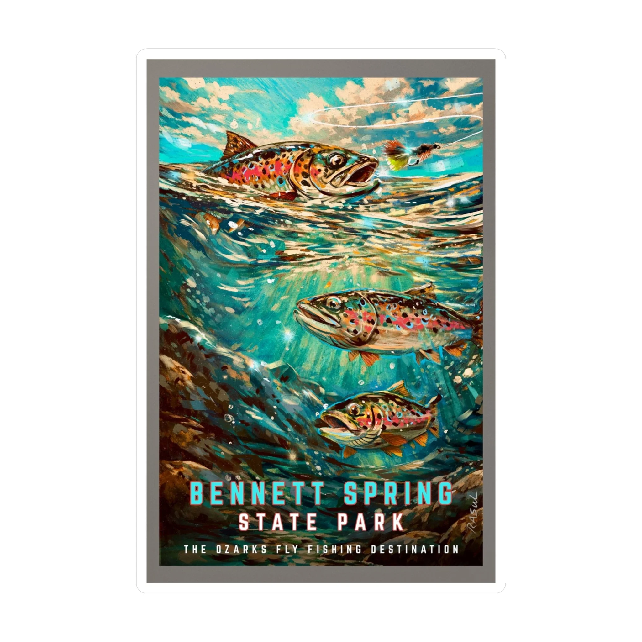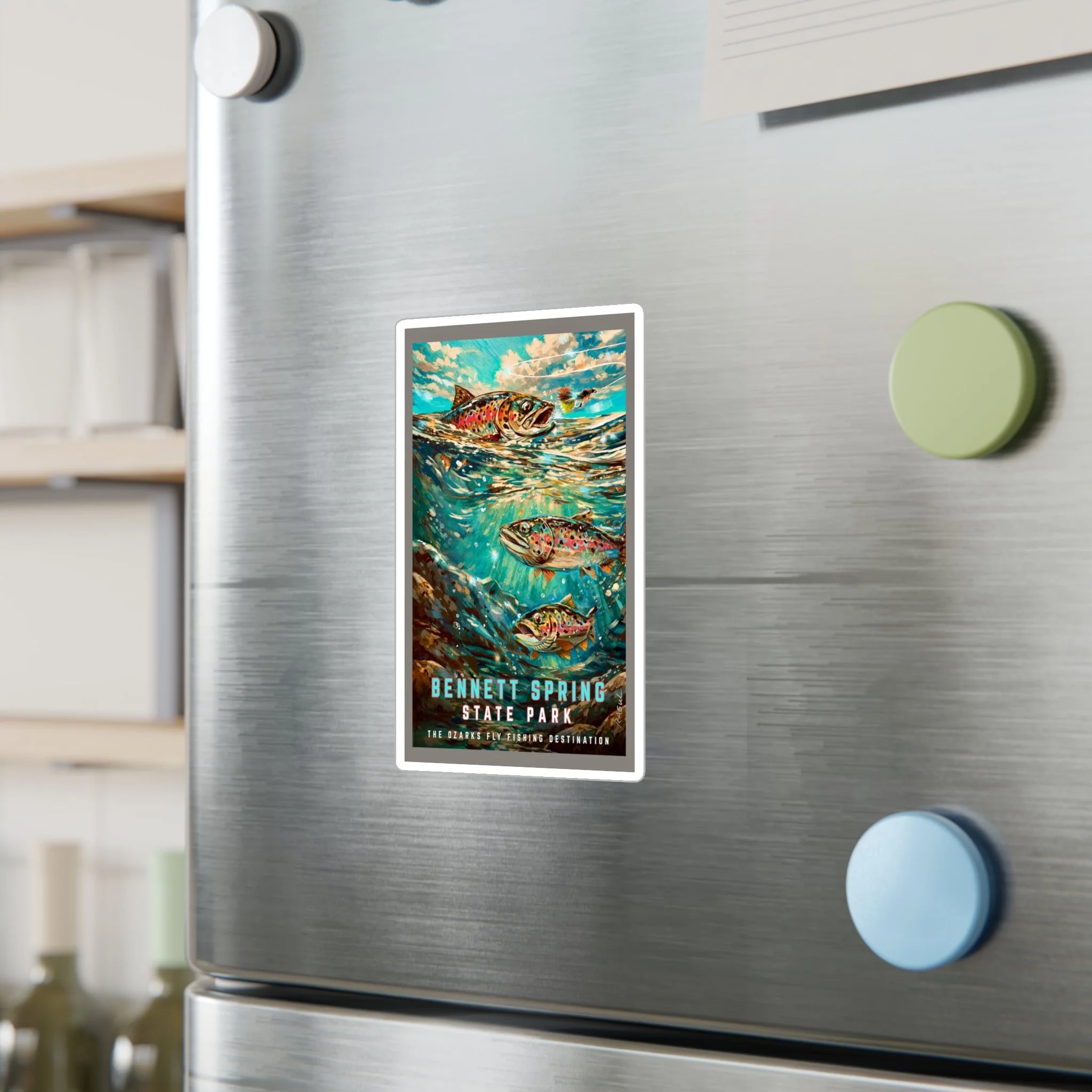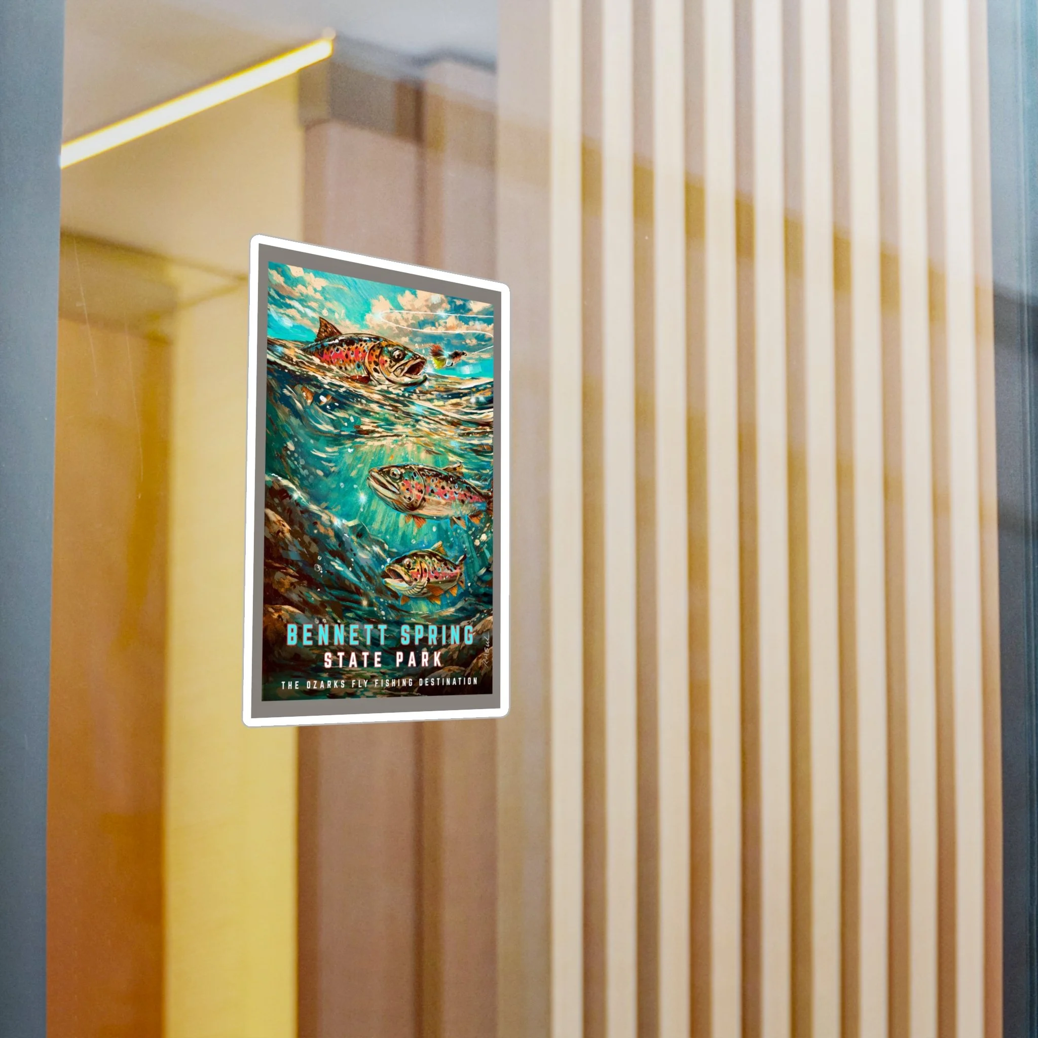 Bring the river home with these BIG satin-finish kiss-cut vinyl decals. Each sticker captures a vibrant, painterly scene of trout gliding through sunlit water—colors that pop and details that draw the eye. The removable adhesive lets you switch placements without sticky residue, while water-, scratch-, and UV-resistant coatings keep the artwork lively outdoors for up to three years. A subtle 1/8" white kiss-cut border frames the art and makes peeling easy. Lightweight and durable, these decals are assembled in the USA. Put them on car windows, water bottles, car bumpers, or your favorite tackle box.