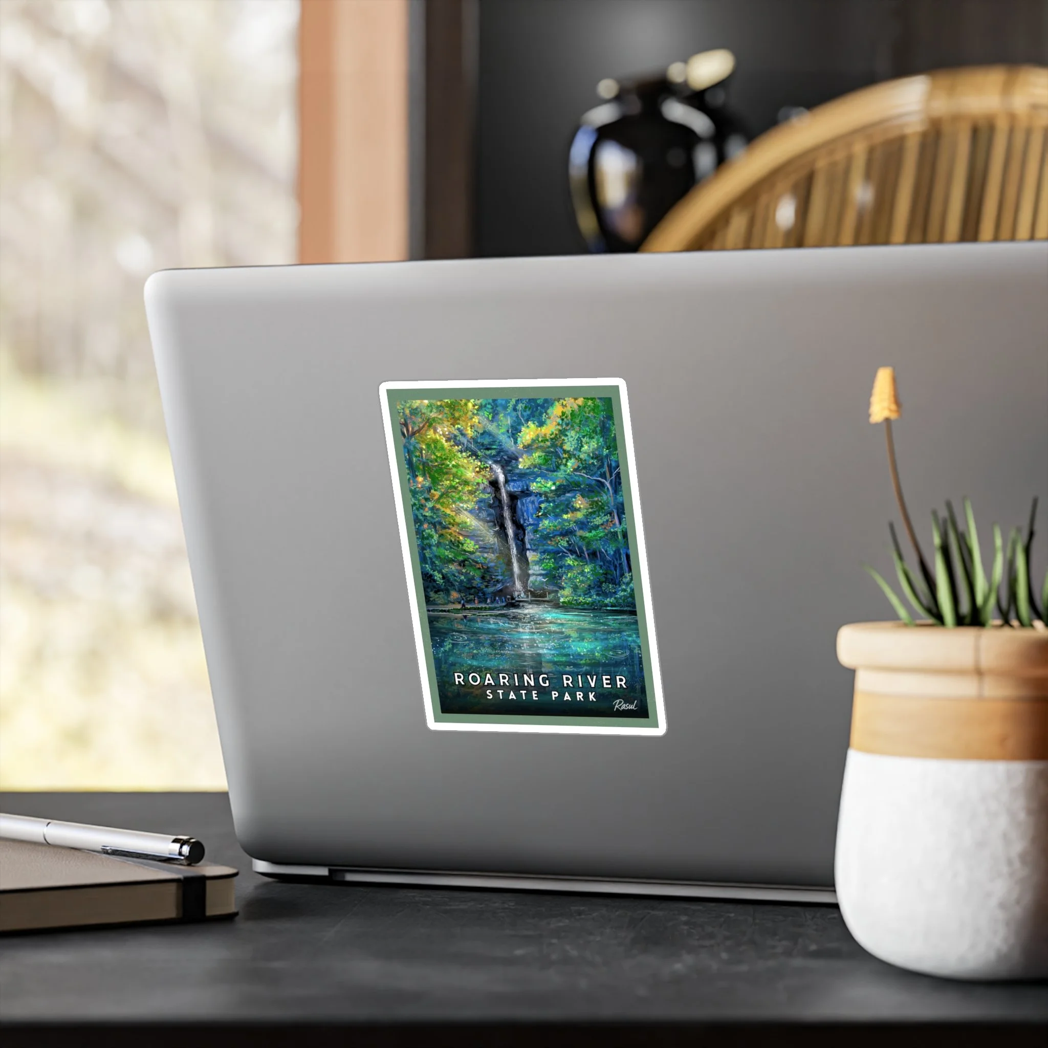 A glossy satin kiss-cut vinyl decal that brings a piece of the outdoors wherever you place it. This sticker features vibrant, fade-resistant printing and a 1/8" white kiss-cut border that frames intricate artwork. Durable against water, scratches, and UV exposure, it keeps colors rich for up to three years outdoors while still removing cleanly when you want a new look. Made from white vinyl with removable adhesive and assembled in the USA, it’s great for windows, water bottles, laptops, and gear that sees real life.